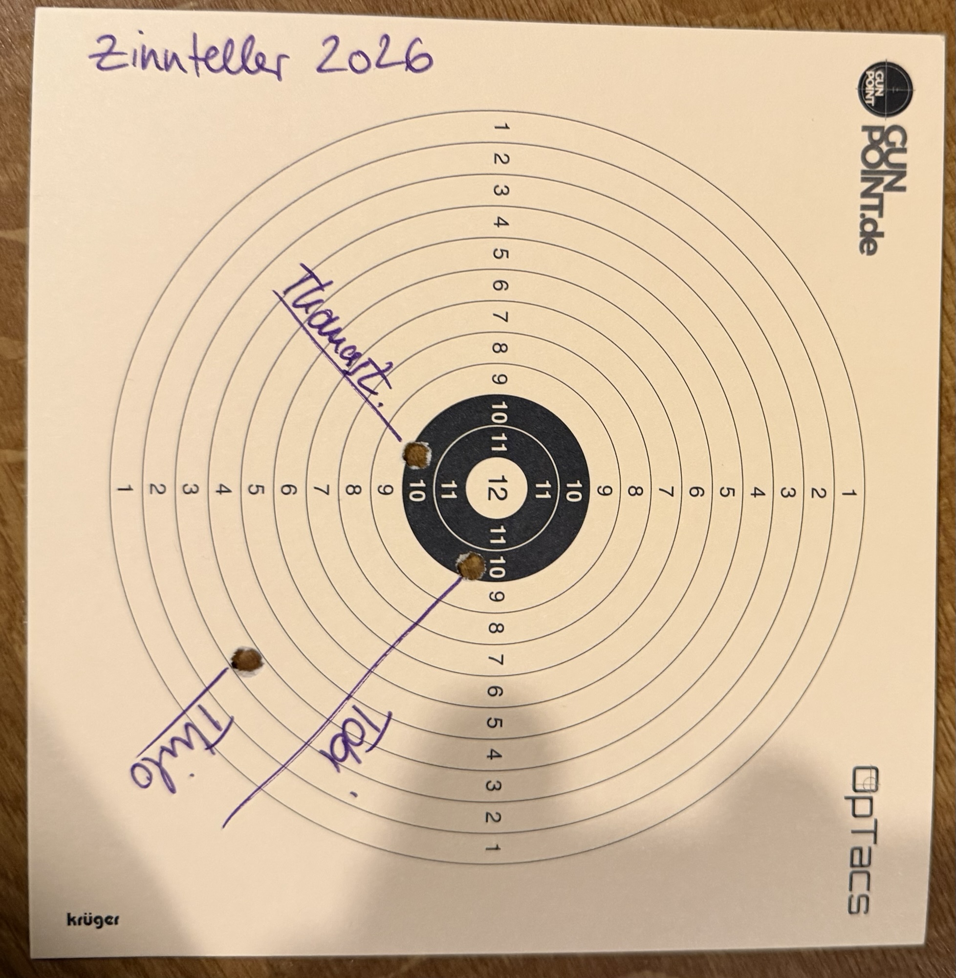 Beim Schießen um den Zinnteller gab es ein komplett anderes Finalistenfeld. Hier schossen Christian, Roland und Daniel die Sieger unter sich aus. Hierbei konnte sich Daniel durchsetzen und kann nun den Zinnteller seins nenne. Zweiter Christian und mit dem dritten Platz musste sich Roland zufrieden geben.